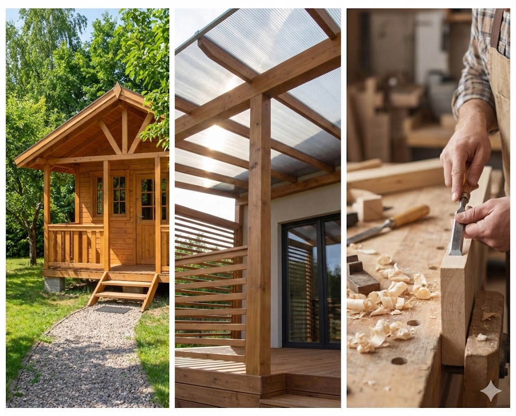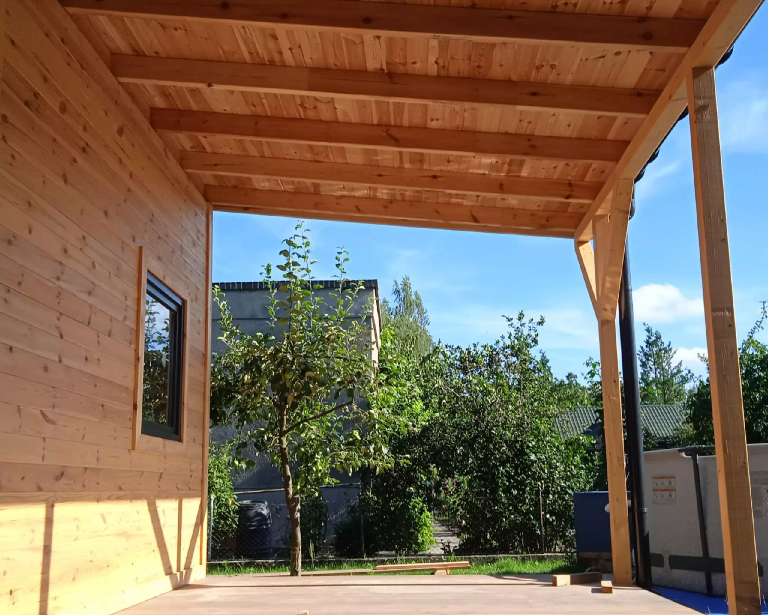 Tarasy i zadaszenia: Drewniane konstrukcje, które stają się sercem ogrodu.