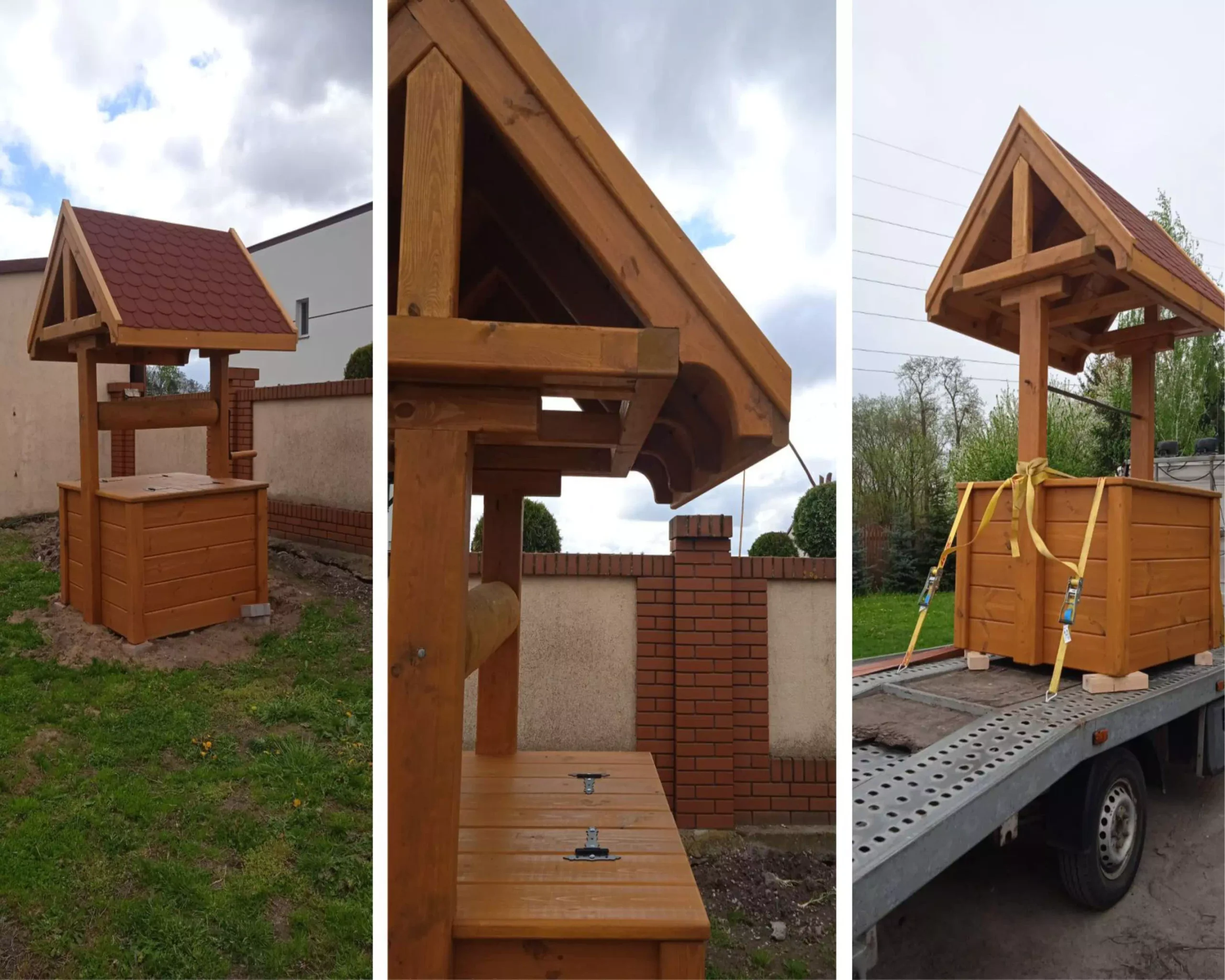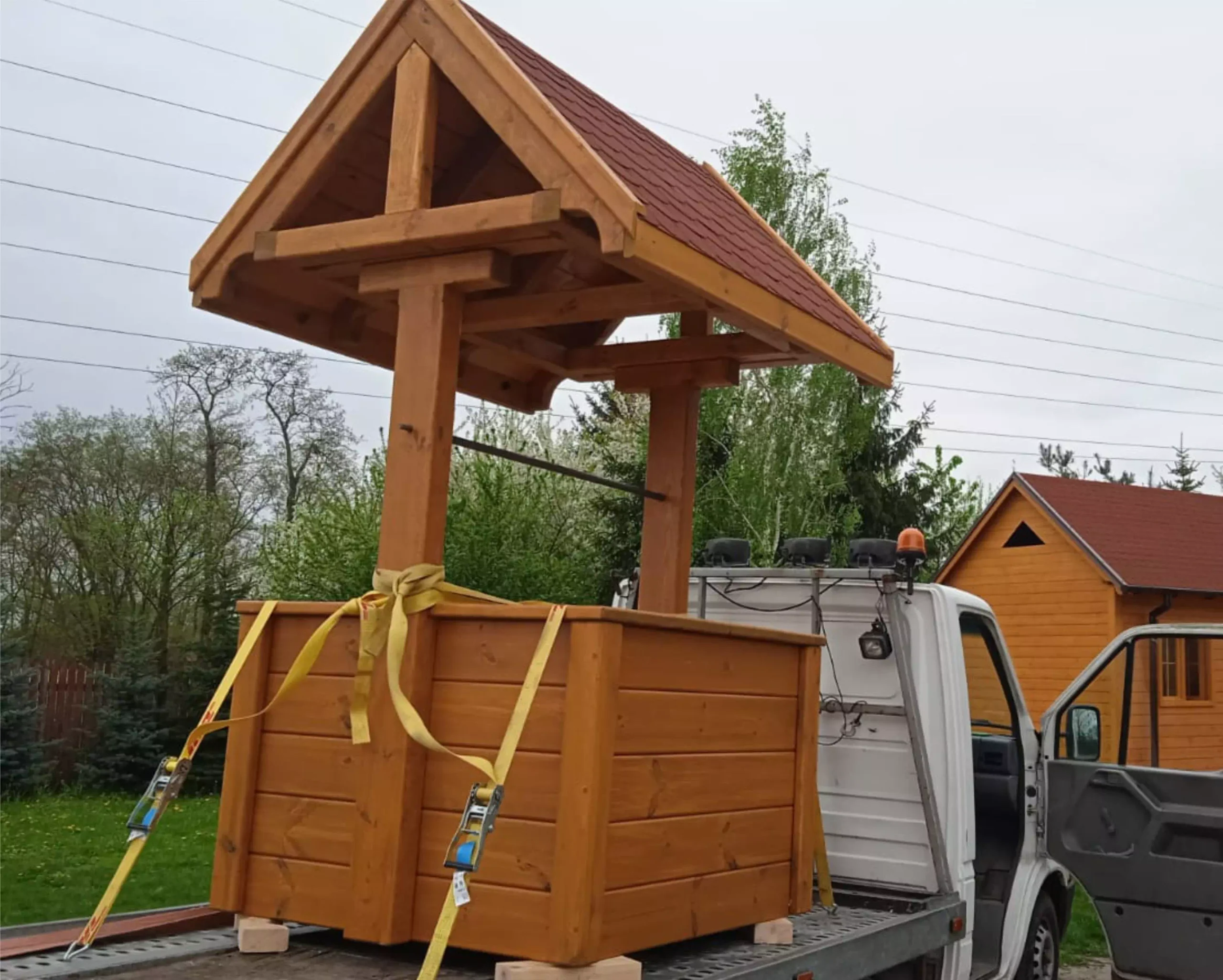 Elementy małej architektury: Budowa studni oraz innych ozdobnych i użytkowych elementów drewnianych.